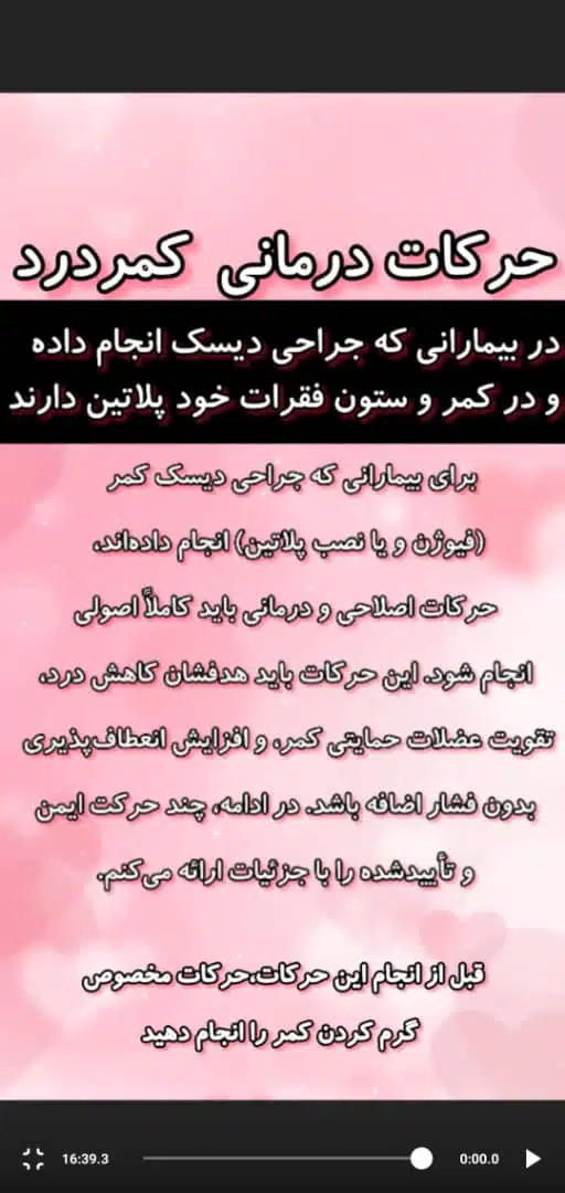 🌟 دوره جامع “حرکات اصلاحی و درمانی برای بهبود کمر بعد از جراحی و پلاتینگذاری” دقیقا برای این هدف طراحی شده است!